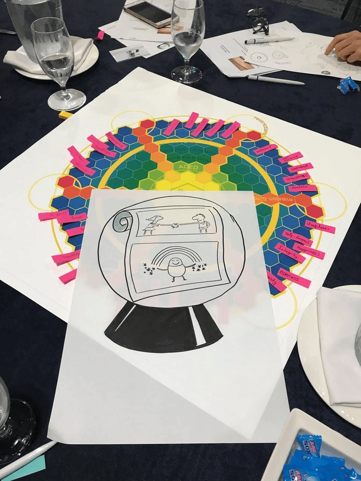 J. Kim Wright organised the conference goers into small groups and gave them sheets of homework to complete where they listed their skills and values. Afterwards each group came together and played a board game, specially designed for this workshop where they discussed each others values and created a small 'gift' for the other groups. What resulted was AMAZING! Each group had in-depth discussions about their values and goals and realised that although most of them had never met, had come from different industries and life paths, they all had a lot of similar values. Wright explained it is these common values that bring organisations together and those same values which must be seen throughout a contract.